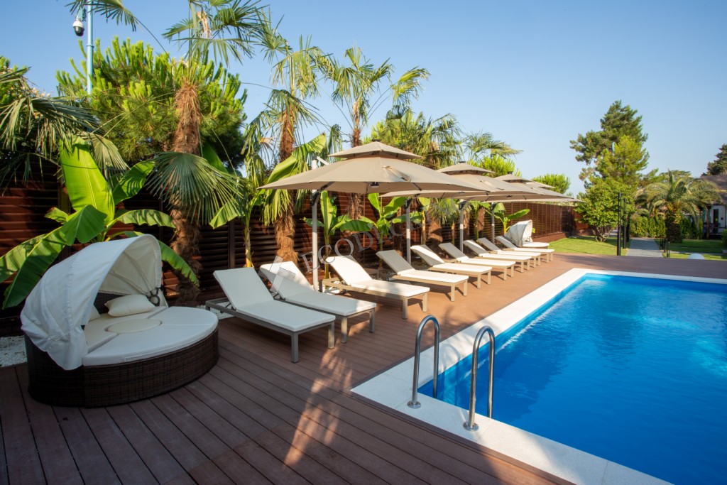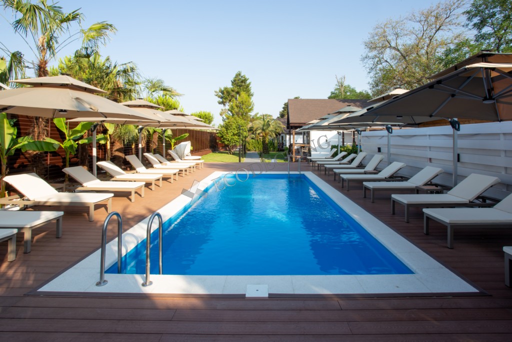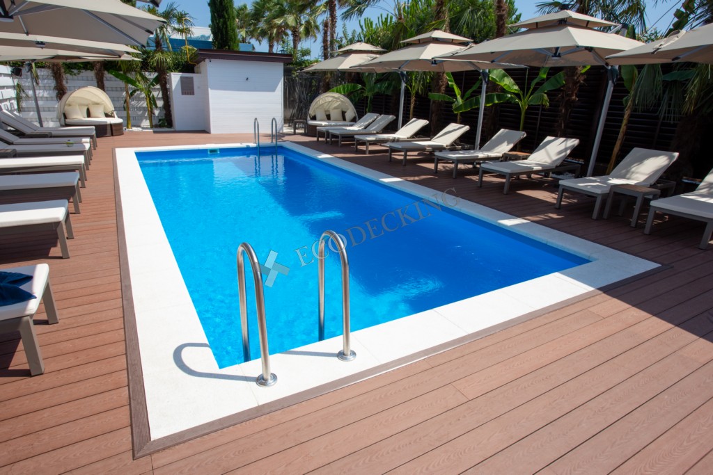 Террасная доска Ecodecking Комфорт 3D монтаж около бассейна